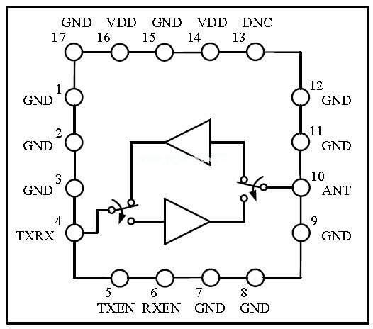 電源信號(hào)VDD與射頻信號(hào)有良好地內(nèi)部隔離電路